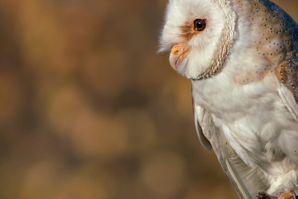 Kerkuil op een tak met een herfstachtergrond.