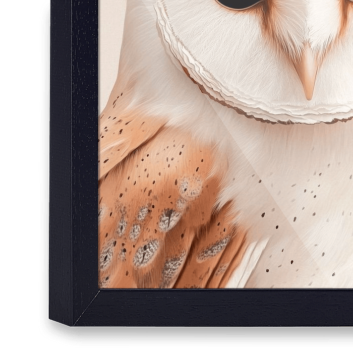 Met zijn hartvormige gezicht en diepzwarte ogen straalt deze uil een mysterieuze allure uit. Zijn vederwitte verenkleed en delicate bruine vlekken geven hem een elegante gratie. Zijn stille aanwezigheid verbergt de wijsheid van de nacht terwijl hij aandachtig en zachtjes de wereld inkijkt.