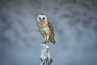 mooie kerkuil poserend voor de camera met een mooi winterse setting