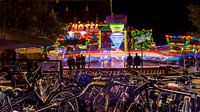 avond opname van kermis met fietsen op de voorgrond. Heel veel jongeren komen op de fietst naar de kermis en zetten deze het liefst zo dicht mogelijk bij de kermis neer.