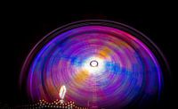 avond opname van een ronddraaiende kermis attractie met lange belichtingstijd.
