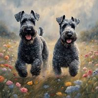 Koop dit digital art kunstwerk Kerry Blue Terrier spelend in een bloemenveld van Johannas Art Creations als reproductie geprint op canvas, aluminium dibond, (ingelijste) fotoprint, behang en ArtFrame. Voor jou op maat geprint in Fine-Art kwaliteit.