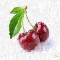 Schilderijen van groot fruit en groenten.