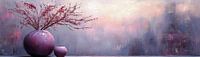 Details: bloemenschilderij, kersenbloesem, vaas, roze, paars, bloemkunst, serene kunst, moderne kunst, abstract, natuur