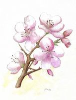 Deze aquarel toont een tak van de Japanse kersenbloesem in prachtige roze tinten. Een symbool van geluk en een nieuw begin