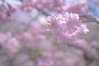 Kersenbloesem in het zachte licht van een zonnige ochtend in het verre Japan. Dromerige roze kleuren van de bloesems in het zonlicht.