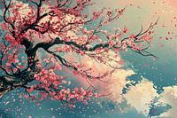 Dit betoverende kunstwerk heeft een prachtige afbeelding van kersenbloesems die in volle pracht bloeien. Het delicate roze en rood van de bloesems contrasteert harmonieus met de donkere takken en zachte achtergrond, waardoor een sereen en esthetisch aangenaam tafereel ontstaat. Ideaal voor zen-geïnspireerde ruimtes en liefhebbers van de Japanse cultuur die een vleugje natuur en sereniteit in hun omgeving willen brengen. Dit schilderij belichaamt de vluchtige schoonheid van de lente en de diepgewortelde traditie van kersenbloesem kijken in Japan.