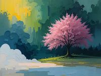 Een delicaat aquarelschilderij dat de schoonheid van kersenbloesems vastlegt in zachte penseelstreken.
