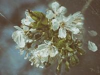 Kersenbloesems, tuinen, schitterend, betoverend, schoonheid, turkoois, wit, de lente, seizoenen, vintage textuur, Still Life, Macro, Fruit Blossom, Blossom, park digitalart, digitaal soort, textuur, modern, illustratie, eigentijds, sfeer, vintage