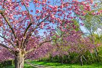 De tijd van de kersenbloesem markeert het begin van de lente. Het pad loopt onder een bladerdak van duizenden en duizenden bloesems. Een idyllische opname om van te genieten.