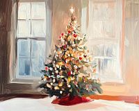 Details: kerstboom, kerst, feestdagen, winter, lichtjes, ornamenten, kunst, schilderij, interieur, decoratie