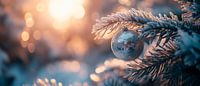 Een magisch spel van licht en schaduw ontvouwt zich tussen besneeuwde sparrentakken, terwijl een glinsterende bal de winterse idylle perfect aanvult. Deze feestelijke sfeer brengt een contemplatieve stemming in elke woonkamer en nodigt uit om te genieten van de warme momenten van de winter. Een blikvanger die herinneringen oproept aan contemplatieve vakanties.