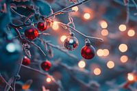 Glimmende rode kerstballen hangen zachtjes aan ijzige takken, omlijst door warme lichtjes die een feestelijke sfeer oproepen. Het samenspel van kou en licht roept nostalgische herinneringen en vakantiemagie op. Dit charmante kunstwerk verandert elke woonkamer in een gezellig toevluchtsoord en creëert een uitnodigende sfeer tijdens de…