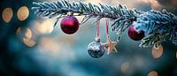 De kunstig hangende kerstballen en de glanzende ster die aan een besneeuwde tak bungelt, creëren een zachte wintersfeer. De glinsterende details geven elke kamer een feestelijk tintje en nodigen uit tot gezelligheid. Perfect voor in de woonkamer om de kerstsfeer te verspreiden.