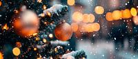 Glinsterende sneeuwvlokken dansen door een feestelijk winterlandschap, terwijl warme lichtjes zachtjes twinkelen. De prachtig versierde kerstboom met gouden ornamenten straalt gezelligheid uit en roept een gevoel van verwachting en warmte op. Dit betoverende beeld is perfect voor in de woonkamer om de contemplatieve sfeer van de feestdagen vast te leggen.