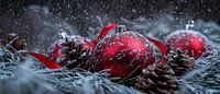 Een winters sprookje komt tot leven: Glimmende rode kerstballen rusten zachtjes op een dikke laag vorst, omringd door delicate dennenappels. Een vleugje magie en gezelligheid komt de kamer binnen. Dit kunstwerk voegt feestelijke warmte toe aan elke woonkamer en verspreidt tegelijkertijd een contemplatieve stemming.