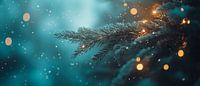 Een delicate sparrentak glinstert in zachte blauwe tinten, omringd door sneeuwvlokken en twinkelende lichtjes in gouden tinten. Dit dromerige wintertafereel brengt knus comfort en een feestelijke sfeer in elke woonkamer. Het nodigt uit om te blijven hangen en creëert een harmonieuze sfeer voor koude winteravonden.
