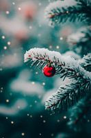 Glinsterende rode bol omringd door een fijne sneeuwdeken: dit winterse tafereel straalt feestelijke gezelligheid uit. De zachte, koude kleuren en de gevallen sneeuwvlokken creëren een magische sfeer. Perfect voor in de woonkamer, waar het kan bijdragen aan de feestvreugde.