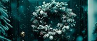 Een prachtige kerstkrans van glinsterende takken en glinsterende kerstballen verwelkomt de winter met feestelijke elegantie. De zachte sneeuw die rond de krans danst, geeft het tafereel een magische sfeer. Ideaal voor in de hal of bij de voordeur, het geeft meteen een gevoel van thuis en vreugdevolle verwachting.