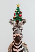 Een vrolijk gezicht dat het hart verwarmt: een zebra met een feestelijke kerstboom op zijn hoofd, versierd met kleurrijke kerstballen en een stralende ster. Dit humoristische accent brengt vrolijkheid en is perfect voor in de woonkamer, waar het gesprekken stimuleert en de feeststemming verhoogt.