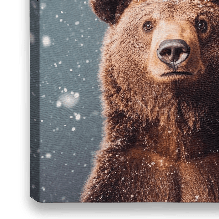 Een vrolijke beer met een feestelijke kerstboom op zijn hoofd brengt iedereen meteen in een goed humeur! Het besneeuwde tafereel straalt winterse charme uit en nodigt uit tot glimlachen. Dit charmante kunstwerk zou een perfecte blikvanger zijn in de woonkamer, waar het de kerstsfeer op een levendige manier kan benadrukken.