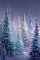 Over ‘Kerstbomen in Lichtsluier Sprankelend Winterbos’ van Eva Lee