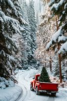 Midden in een magisch winterlandschap rijdt een felrode vrachtwagen geladen met een verse kerstboom over een besneeuwde, kronkelige weg. Hoge, besneeuwde dennenbomen omlijsten de weg en geven het tafereel een magische, feestelijke sfeer, terwijl zachte sneeuw van de takken druipt. Er hangt een vleugje avontuur en verwachting in de…