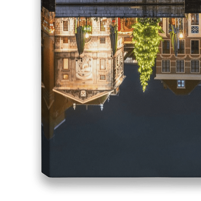 De avondsfeer, gecombineerd met de historische architectuur en de feestelijke kerstversiering, creëert een atmosfeer van gezelligheid en betovering. De glinsterende lichtjes weerspiegelen niet alleen in het water, maar lijken ook de historische geest van Leiden te omarmen.