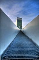 Het KPN-gebouw (of Toren op Zuid) gezien vanaf de loopbrug langs de Nieuwe Maas.