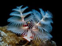 Kerstboomwormpjes zijn fantastisch mooie dieren die in de koralen van het Caribisch gebied wonen. Deze is gefotografeerd in het water rond Curaçao.