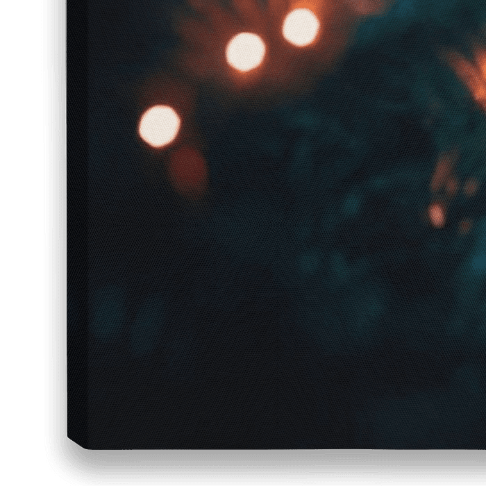 Een mysterieus cadeau, verpakt in delicaat sparrengroen en glimmende lichtjes, straalt feestelijke magie uit. De felrode strik trekt ieders aandacht en wekt de verwachting van Kerstmis. Dit nostalgische motief voegt een gezellige sfeer toe aan woonkamers en brengt het feest van de liefde heel dichtbij.