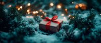 Een liefdevol ingepakt cadeau, omringd door zachte sneeuw en twinkelende lichtjes, straalt een warm, uitnodigend gevoel uit. De felrode strik valt harmonieus op en belooft vreugde en verrassing. Perfect voor een gezellige sfeer in de woonkamer, het roept een feestelijke stemming op en nodigt uit om te blijven hangen.