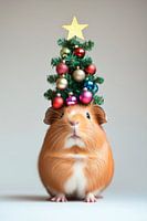 Een vrolijke cavia draagt trots een kleine kerstboom met glinsterende kerstballen en een fonkelende ster. Dit charmante, feestelijke tafereel brengt een glimlach op het gezicht en een vleugje vreugde in elke hoek. Perfect voor in de woonkamer om kerstvreugde en goed humeur te verspreiden!
