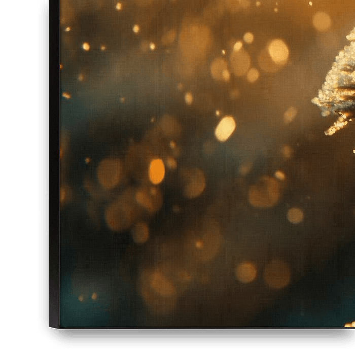 Glinsterende sneeuwkristallen dansen in het zachte licht, terwijl een ijzige dennenboom met fluweelzachte naalden het gevoel van winterse magie overbrengt. De warme gouden tinten geven de kamer een gezellige sfeer. Ideaal voor de woonkamer om een gezellige en uitnodigende sfeer te creëren tijdens de koudere maanden.