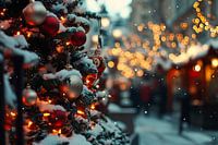 Een gezellige kerstsfeer ontvouwt zich te midden van zachte sneeuwvlokken en twinkelende lichtjes. Prachtige kerstballen en glinsterende decoraties geven het tafereel een magisch tintje. Dit betoverende motief creëert warmte en gezelligheid, ideaal voor de woonkamer om feestelijke herinneringen op te roepen en uitnodigende gesprekken te inspireren.
