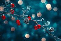 Zoete rode bessen en delicate, glinsterende dennenappels dansen op een ijzige tak, terwijl op de achtergrond zachte lichtjes fonkelen. Deze winterse compositie geeft elke kamer een feestelijke, uitnodigende sfeer en is bijzonder geschikt voor de woonkamer, waar het gezelligheid en warmte verspreidt.