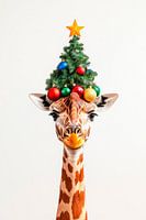 Een leuk samenspel van natuur en kerst: Een giraffe draagt trots een feestelijke kerstboom op zijn hoofd, versierd met kleurrijke kerstballen en een stralende ster. Dit vrolijke kunstwerk tovert meteen een glimlach op het gezicht en is perfect voor in de woonkamer om de feestvreugde te verspreiden!