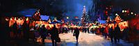 Details: Kerst, schilderij, kerstboom, kerstmarkt, nachtmarkt, verlichting, kunstwerk, wintertafereel, nacht, mensen