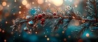 Glinsterende lichtjes fonkelen in de zachte val van sneeuwvlokken en omlijsten een elegante sparrentak met felrode bessen. Dit winterse tafereel brengt gezelligheid en een feestelijke sfeer in elke woonkamer, waar het kan schitteren als een magische herinnering aan de contemplatieve tijd van het jaar.