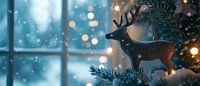 In een betoverend winterlandschap, omringd door zachte sneeuwvlokken, schittert een elegant hert met gloeiende lichtjes op de achtergrond. Dit feestelijke tafereel vol warmte en gezelligheid voert je mee naar een wereld vol dromen en is perfect voor in de woonkamer om een uitnodigende, contemplatieve sfeer te creëren.