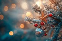 Glinsterende kerstornamenten die zachtjes glinsteren in het licht vangen de feestelijke magie van het winterseizoen. De zweem van dennennaalden en gloeiende bessen roept herinneringen op aan gezellige avonden. Dit charmante tafereel is perfect voor in de woonkamer, waar het een feestelijke sfeer en warm gezelschap creëert.