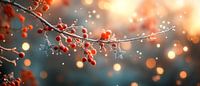 Hier ontvouwt zich een betoverend samenspel van glinsterende rode bessen en zachte lichtspelingen. De tere takken lijken bijna te dansen in het licht als een kerstmelodie. Dit schilderij is ideaal voor het verfraaien van een gezellige woonkamer en nodigt je uit om te blijven hangen en te dromen terwijl het een warme, uitnodigende sfeer creëert.
