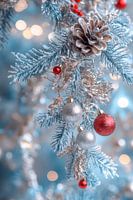 Een magische winterdroom in zachte blauw- en zilvertinten, versierd met glanzende kerstballen en een dennenappel. Deze feestelijke decoratie straalt een vleugje kerst uit en creëert een gezellige sfeer. Ideaal voor in de woonkamer om de gezelligheid van de feestdagen te vieren en gasten te betoveren.