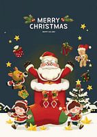 Vang de magie van Kerstmis met deze betoverende illustratie van de Kerstman en zijn kleine helpers. De fonkelende sterren en feestelijke versieringen creëren een magische sfeer.