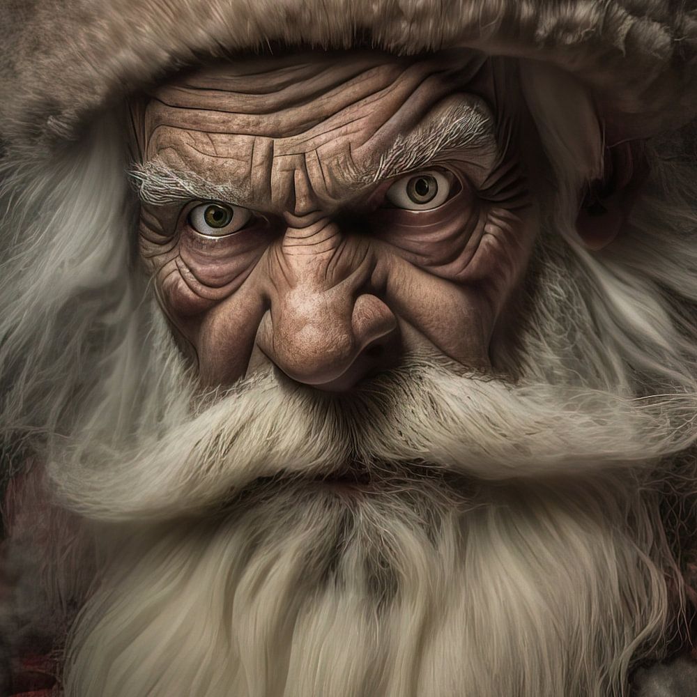 De kerstman in een niet zo goed humeur. Digitale weergave.