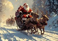 De Kerstman glimlacht hartelijk als hij cadeautjes aflevert op kerstavond. Hij draagt een dikke rode jas versierd met wit bont en draagt een zak vol cadeaus op zijn rug. De nacht ziet er magisch uit met zachte sneeuw die valt, terwijl de Kerstman op de stoep sluipt om cadeautjes neer te leggen voor de kinderen die vast slapen, klaar om 's ochtends geluk te verspreiden. De heldere tint van haar gezicht straalt een kerstsfeer vol magie en goedheid uit.
