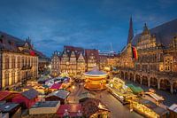 Kerstmarkt in Bremen, Duitsland bij nacht