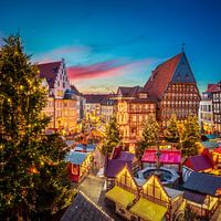 Kerstmarkt op het historische marktplein in Hildesheim, Duitsland