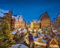 Kerstmarkt op het historische marktplein in Hildesheim, Duitsland