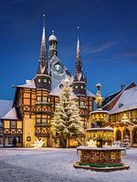 Kerstversieringen voor het stadhuis van Wernigerode, Duitsland